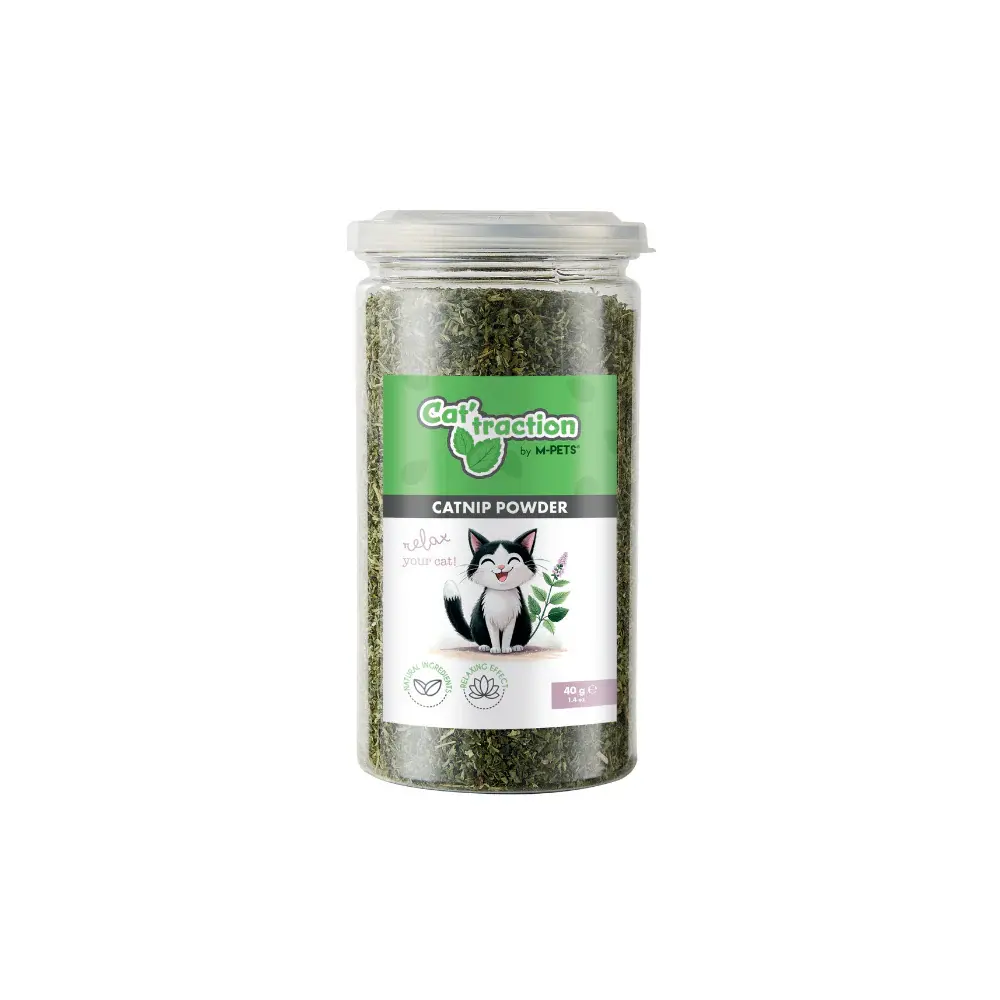 Add a burst of playfulness to your cat’s day with Cat’traction by M-PETS® ! Sprinkle the catnip powder on their favourite toys to entice your cat’s hunting instincts and motivate them to play and exercise. Sprinkle to add an irresistible fragrance to scratching posts, beds and cushions. Your cat will be playing, scratching and snoozing in no time
