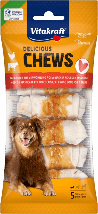 Treat your four-legged friend to Vitakraft’s Chew Knots. This treat is made from dried beef hide wrapped in delicious chicken.